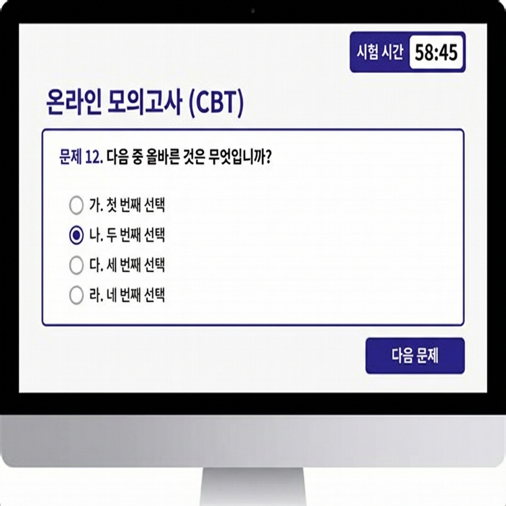 실전처럼 연습하고 한 번에 합격할 수 있도록, 실제 시험 환경을 그대로 구현한 CBT 모의고사 시스템입니다. 시험지 자동 생성, 즉시 채점, 오답 노트까지 한 곳에서 관리하세요.